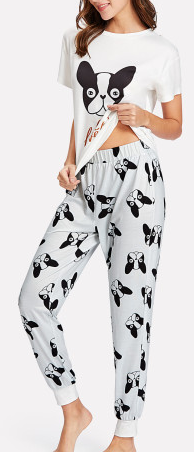 Cute Dog Embroidered Pocket Tie Tee Shirt Fashion Top