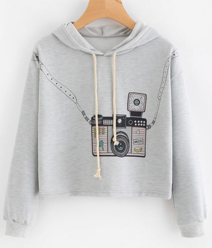Drawstring Hoodie Camera Graphic Sweat Shirt Jacket