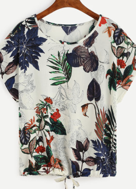 Floral Drawstring Loose Fashion Blouse Top Shirt