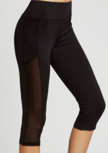 Mesh Side Black Sport Yoga Pilates Capri Leggings