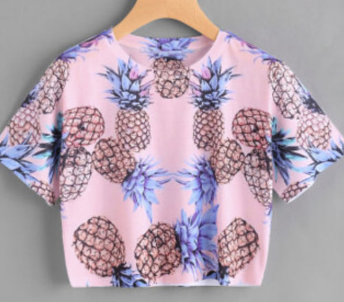 Pineapple Graphic Crop Loose Comfy Fit Shirt Top