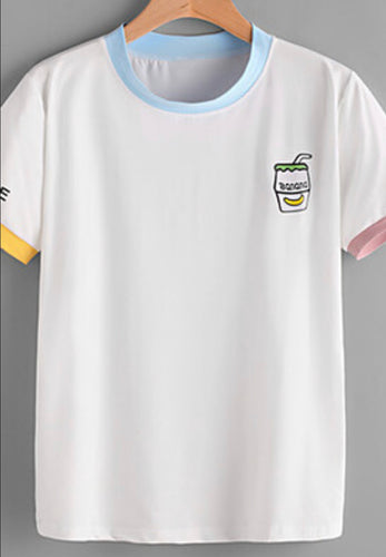 Pastels Ringer Banana Shake Graphic Tee Shirt Top