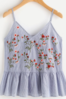 Strap Floral Embroidered Stripe Ruffle Top Cami Blouse