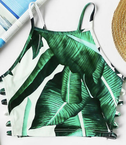 Strap Tropical Leaf Print Cami Yoga Casual Fashion Crop Top